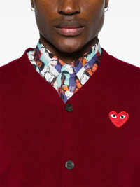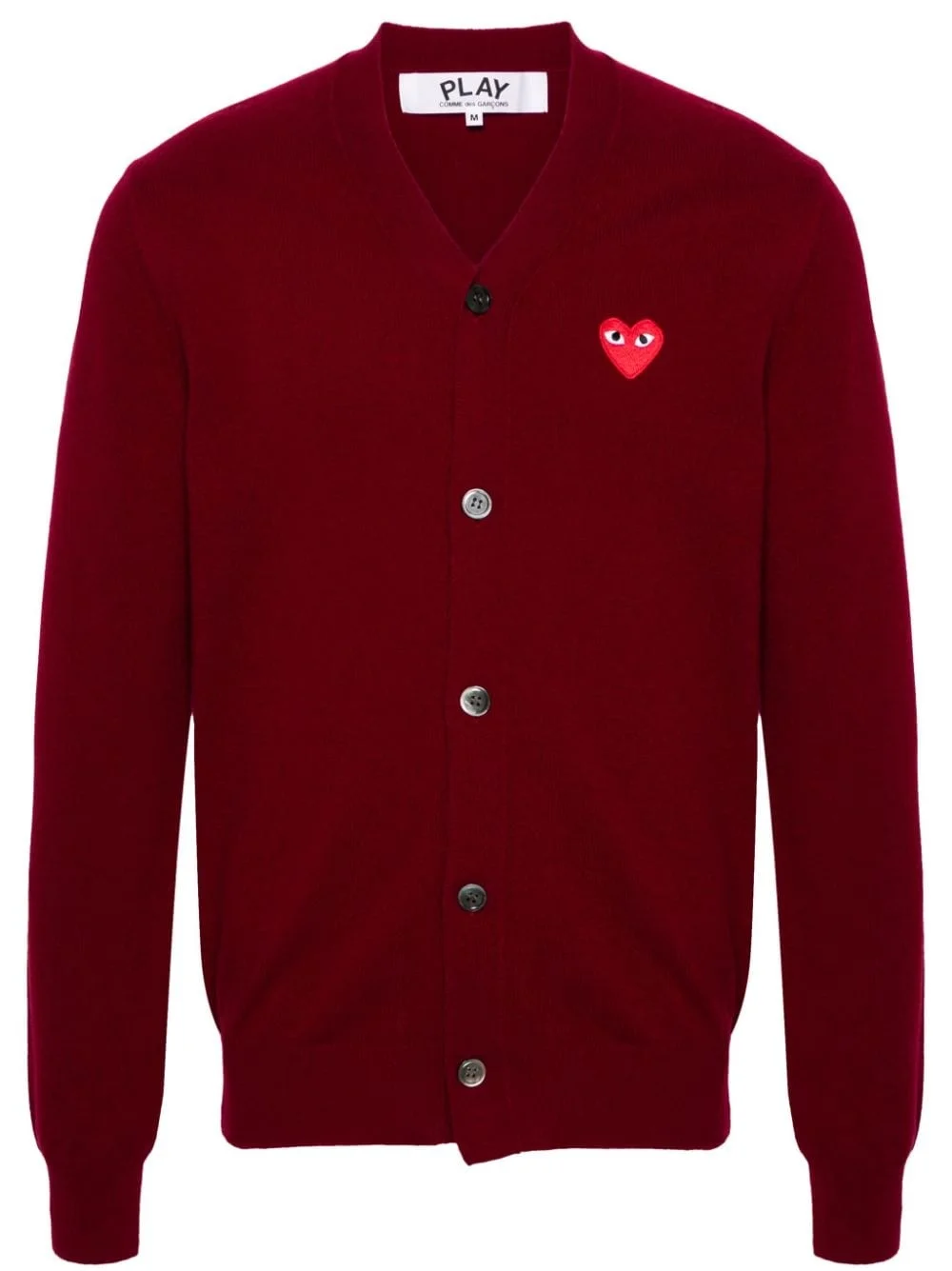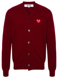 V-neck wool cardigan Highlights - Burgundy - Wool - Knitted construction - Signature heart patch - Ribbed v-neck - Front button fastening - Long sleeves - Ribbed cuffs and hem - When buying this unisex item, keep in mind that it is graded in standard men's sizing. Imported Composition Wool 100% SIZE & FIT Model measurements Height 5 ft 9 in(1.75 m) Bust/Chest 34.64 in(88 cm) Hips 36.61 in(93 cm) Waist 26.37 in(67 cm) Measurement LENGTH 24.8 in(63 cm) SLEEVE LENGTH 25.19 in(64 cm) Shoulder Width 14.96 in(38 cm) FittingInformation This piece is unisex – expect a slim fit if you usually select men's sizing; expect a looser fit if you usually select women's sizes The ribbed hem offers a close, comfortable fit Made with a midweight knit, this piece offers some stretch