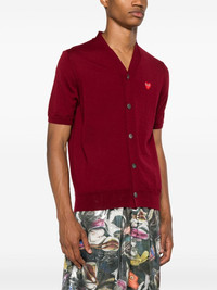 V-neck wool cardigan Highlights - Burgundy - Wool - Knitted construction - Signature heart patch - Ribbed v-neck - Front button fastening - Short sleeves - Ribbed cuffs and hem - When buying this unisex item, keep in mind that it is graded in standard men's sizing. Imported Composition Wool 100% SIZE & FIT Model measurements Height 5 ft 11 in(1.8 m) Bust/Chest 32.67 in(83 cm) Hips 36.22 in(92 cm) Waist 24.4 in(62 cm) FittingInformation This unisex piece is designed for a relaxed fit whether you usually select women's or men's sizes The ribbed hem offers a close, comfortable fit Made with a midweight knit, this piece offers some stretch