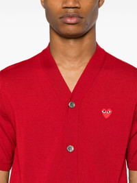 V-neck wool cardigan Highlights - Rose red - Wool - Knitted construction - Signature heart patch - Ribbed v-neck - Front button fastening - Short sleeves - Ribbed cuffs and hem - When buying this unisex item, keep in mind that it is graded in standard men's sizing. Imported Composition Wool 100% SIZE & FIT Model measurements Height 5 ft 11 in(1.8 m) Bust/Chest 32.67 in(83 cm) Hips 36.22 in(92 cm) Waist 24.4 in(62 cm) FittingInformation This unisex piece is designed for a relaxed fit whether you usually select women's or men's sizes The ribbed hem offers a close, comfortable fit Made with a midweight knit, this piece offers some stretch