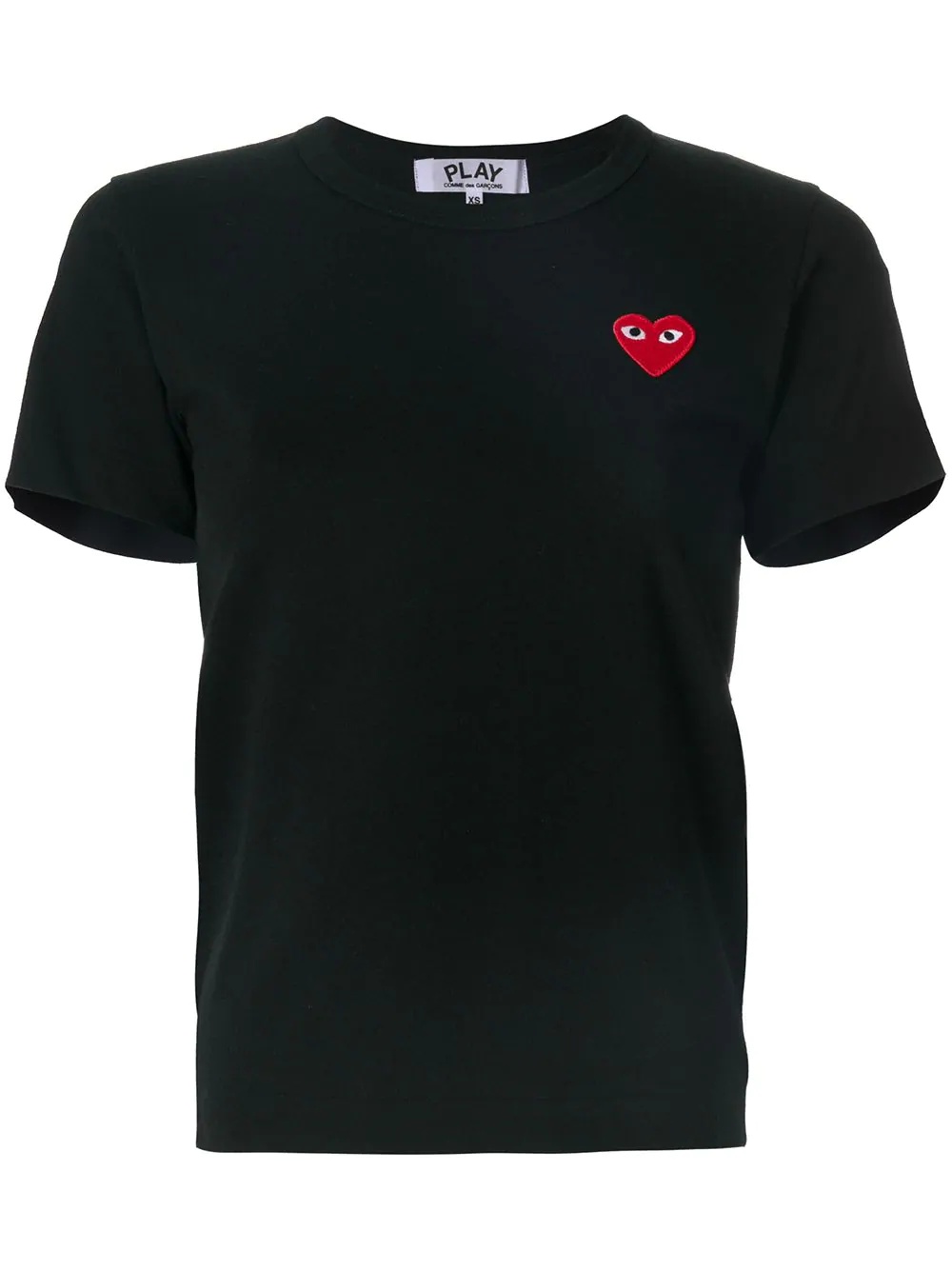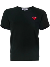 heart logo T-shirt Comme Des Garcons have discreetly appliqued their iconic heart design in its signature shade of red to this classic T-shirt - small enough to not demand attention, but big enough to be noticed. This black cotton heart logo T-shirt from Comme Des Garcons Play features a crew neck and short sleeves. Imported Composition Cotton 100% SIZE & FIT Model measurements Height 5 ft 11 in(1.8 m) Bust/Chest 31.49 in(80 cm) Hips 35.82 in(91 cm) Waist 23.62 in(60 cm) Measurement SLEEVE LENGTH 6.29 in(16 cm) Shoulder Width 13.38 in(34 cm) Length 21.25 in(54 cm) BUST 64.17 in(163 cm) FittingInformation Designed for a relaxed fit, this piece allows for comfort and movement when worn Made from a midweight non-stretch fabric, this piece offers minimal elasticity when worn This piece fits small – take one size up