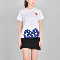 (WMNS) COMME des GARCONS PLAY Polka Dot Half Heart Tee 'White Blue' AZ-T235-051-1