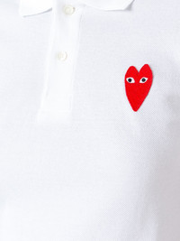 logo stamp top White and red cotton logo stamp top from Comme Des Garcons Play. Imported Composition Cotton 100% SIZE & FIT Model measurements Height 5 ft 11 in(1.8 m) Bust/Chest 33.46 in(85 cm) Hips 35.03 in(89 cm) Waist 24.8 in(63 cm)