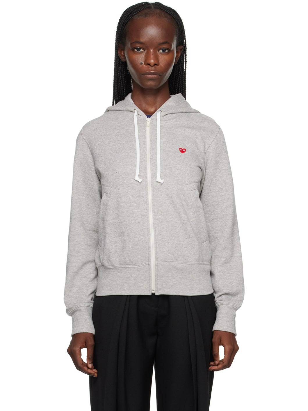 French terry hoodie. · Drawstring at hood · Zip closure · Logo graphic patch at chest · Welt pockets · Rib knit hem and cuffs Supplier color: Grey