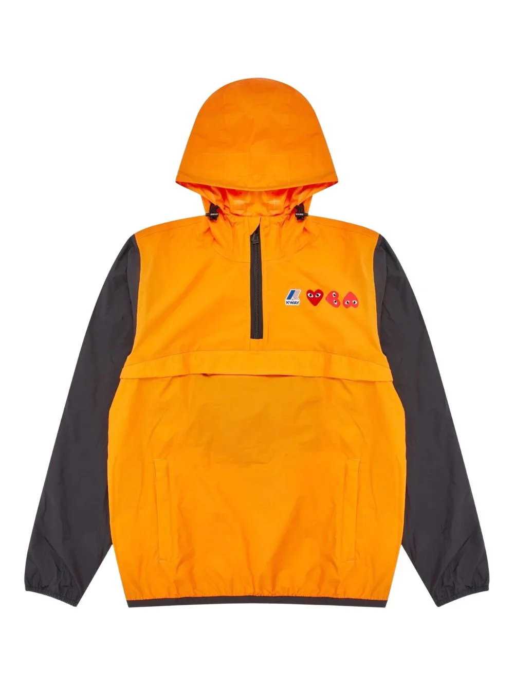 x K-Way Heart-patch lightweight jacket Highlights - Orange - Black sleeves - Ripstop texture - Hooded - Half zip fastening - Front pouch pocket Imported Composition Nylon 100% Washing instructions Read Manufacturer Guidelines
