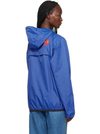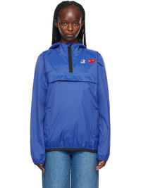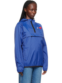Packable nylon ripstop jacket. · Bungee-style drawstring at hood · Stand collar · Half-zip closure · Logo printed at chest · Embroidered graphic patch at chest · Zip pockets · Concealed bungee-style drawstring at hem · Elasticized cuffs · Graphic printed at back · Storm flap at back · Unlined · Logo-engraved black hardware Part of the Comme des Garçons Play x K-Way collaboration. Supplier color: Blue