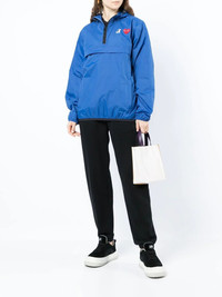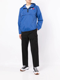 x K-Way quarter-zip hoodie Highlights - X k-way quarter-zip hoodie from comme des garcons play featuring blue, cotton, lightweight construction, logo patch at the chest, short front zip fastening, classic hood, long sleeves and front zip-fastening pocket. when buying this unisex item, keep in mind that it is graded in standard men's sizing.. Made in Italy Composition Cotton 100% SIZE & FIT Model measurements Height 5 ft 11 in(1.8 m) Bust/Chest 28.34 in(72 cm) Hips 35.43 in(90 cm) Waist 23.62 in(60 cm) Measurement SLEEVE LENGTH 25.59 in(65 cm) LENGTH 25.98 in(66 cm) WAIST 41.73 in(106 cm) BUST 40.94 in(104 cm) Shoulder Width 16.14 in(41 cm) FittingInformation This unisex piece runs small but is designed for a relaxed fit – take one size up The adjustable drawstring means that you can adjust this piece’s fit to suit your comfort and preference Made from a lightweight non-stretch fabric, this piece offers minimal elasticity when worn