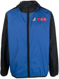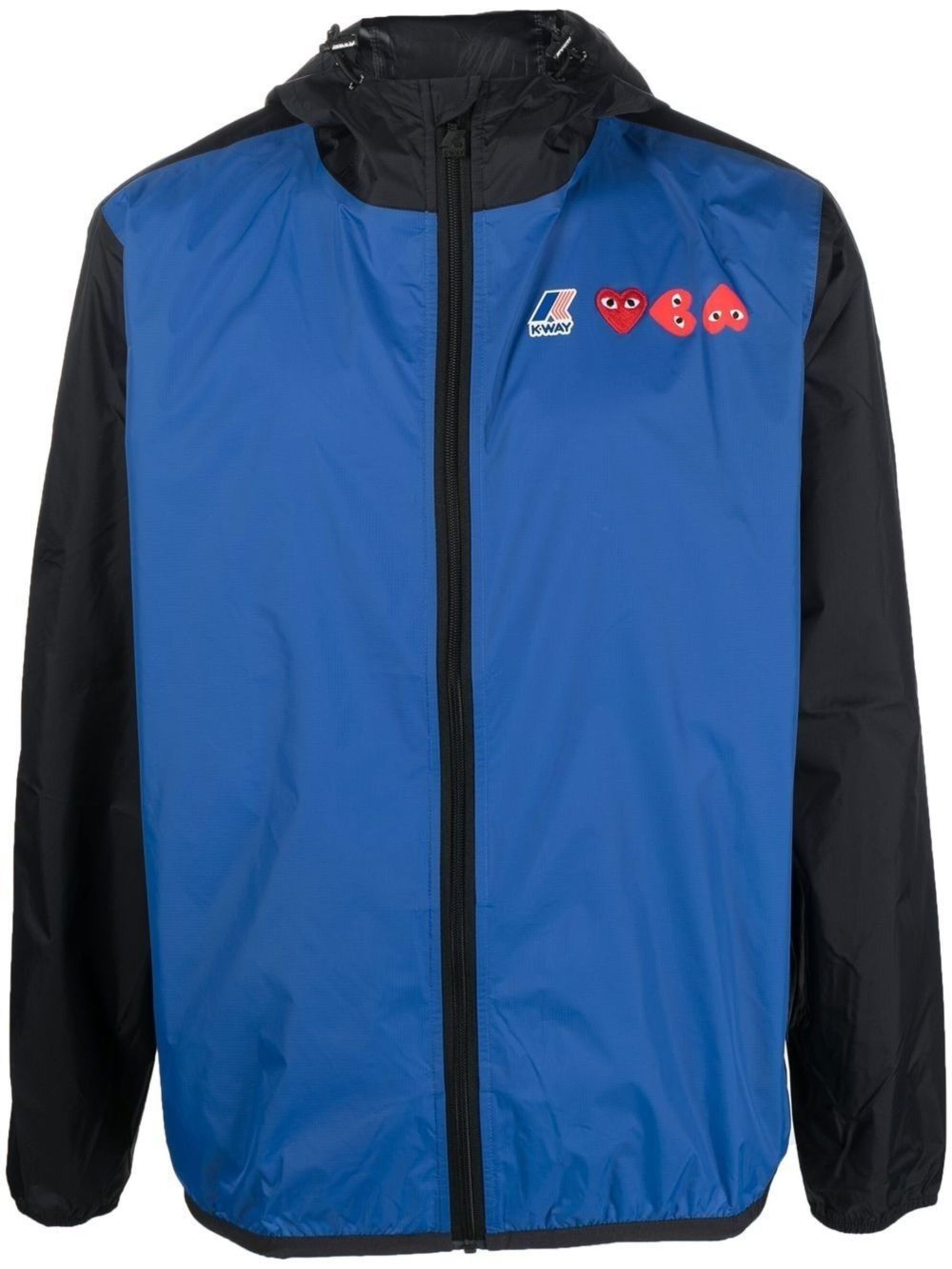 x Kway logo-print hooded jacket from COMME DES GARCONS PLAY featuring two-tone design, logo print at the chest, classic hood, front zip fastening, long sleeves, royal blue, black and straight hem. Size & Fit Model Measurements: Height: 1.75 m Bust/Chest: 86.0 cm Hips: 92.0 cm Waist: 66.0 cm Model wears size M Fabric and Care Designer Style ID: AZJ505051 Designer Colour: 2 - BLUE / BLACK Composition: Polyamide 100% Washing instructions: Machine Wash Made in Vietnam