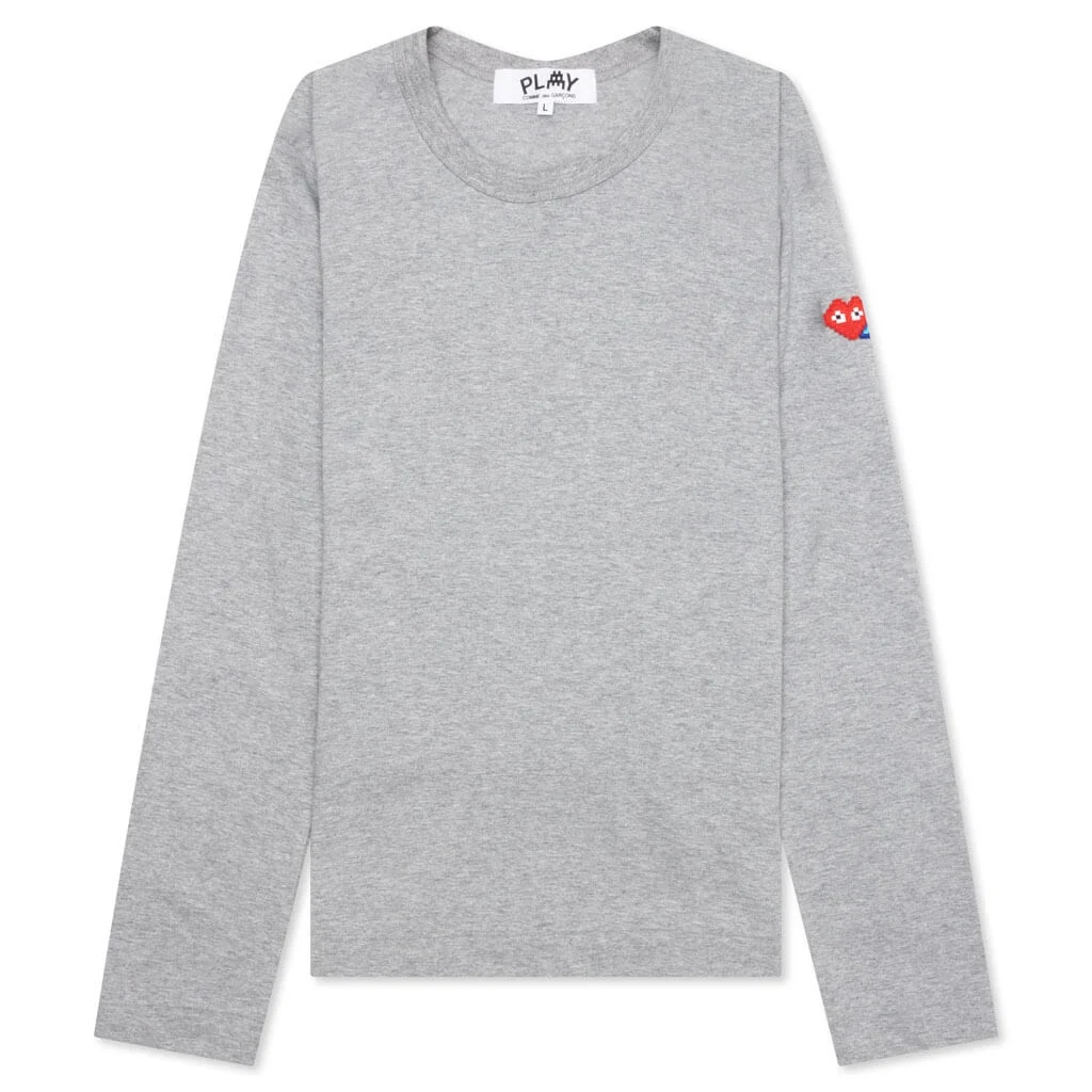 COMME DES GARCONS PLAY X THE ARTIST INVADER WOMEN'S L/S TEE - GREY