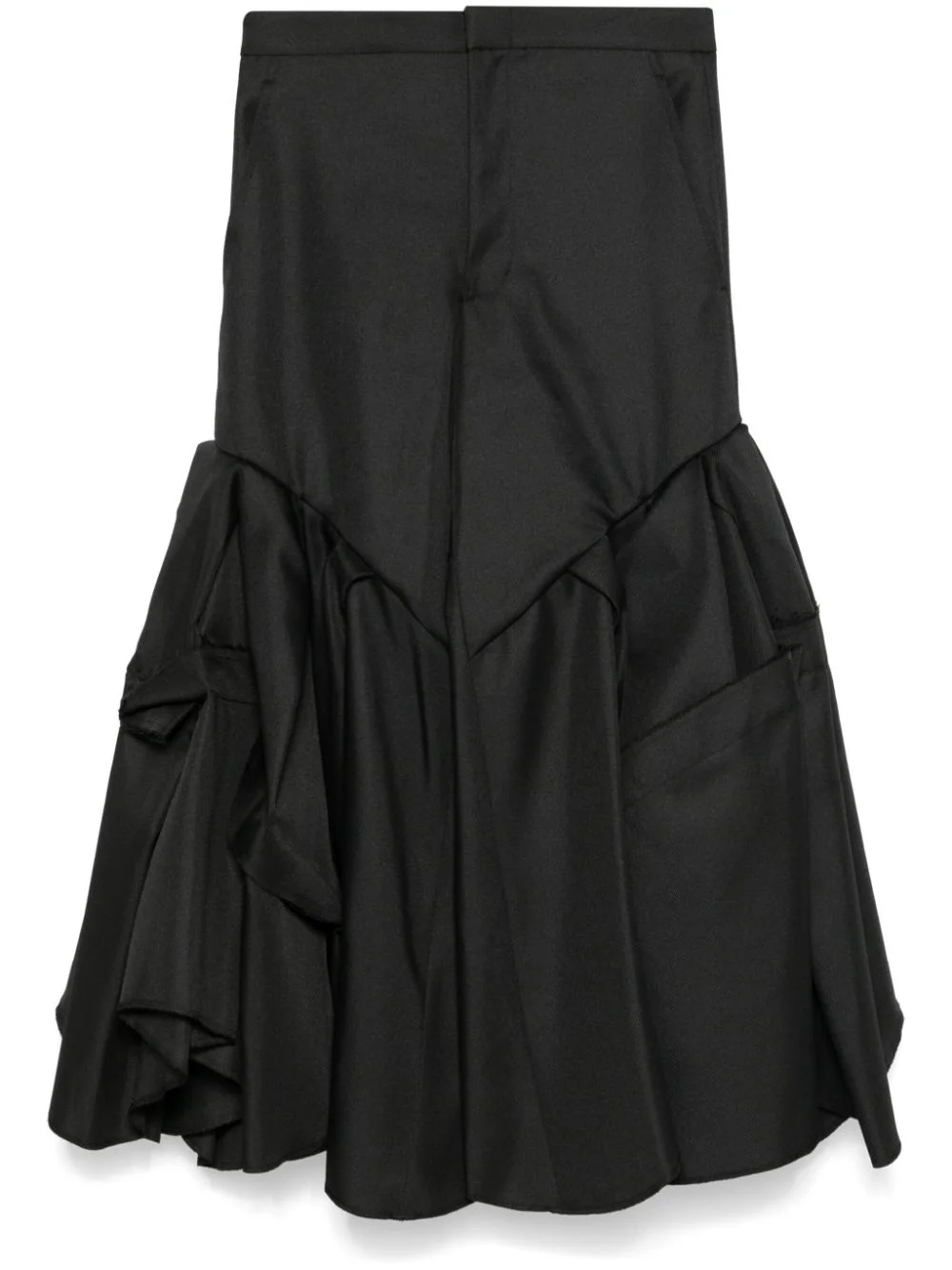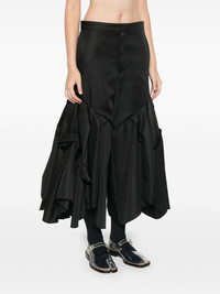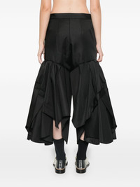 pleated flared trousers Highlights - Black - Twill weave - Panel detailing - Pleat detailing - Concealed front button, hook and zip fastening - Two diagonal pockets to the sides - Ruffled detailing - Flared Imported Composition Polyester 100% SIZE & FIT Model measurements Height 5 ft 9 in(1.75 m) Bust/Chest 31.88 in(81 cm) Hips 34.64 in(88 cm) Waist 24.01 in(61 cm) FittingInformation Designed with a wide-leg cut, these trousers allow for a close fit at the waist and offer a loose and roomy fit over the leg Cropped in length Made from a midweight non-stretch fabric
