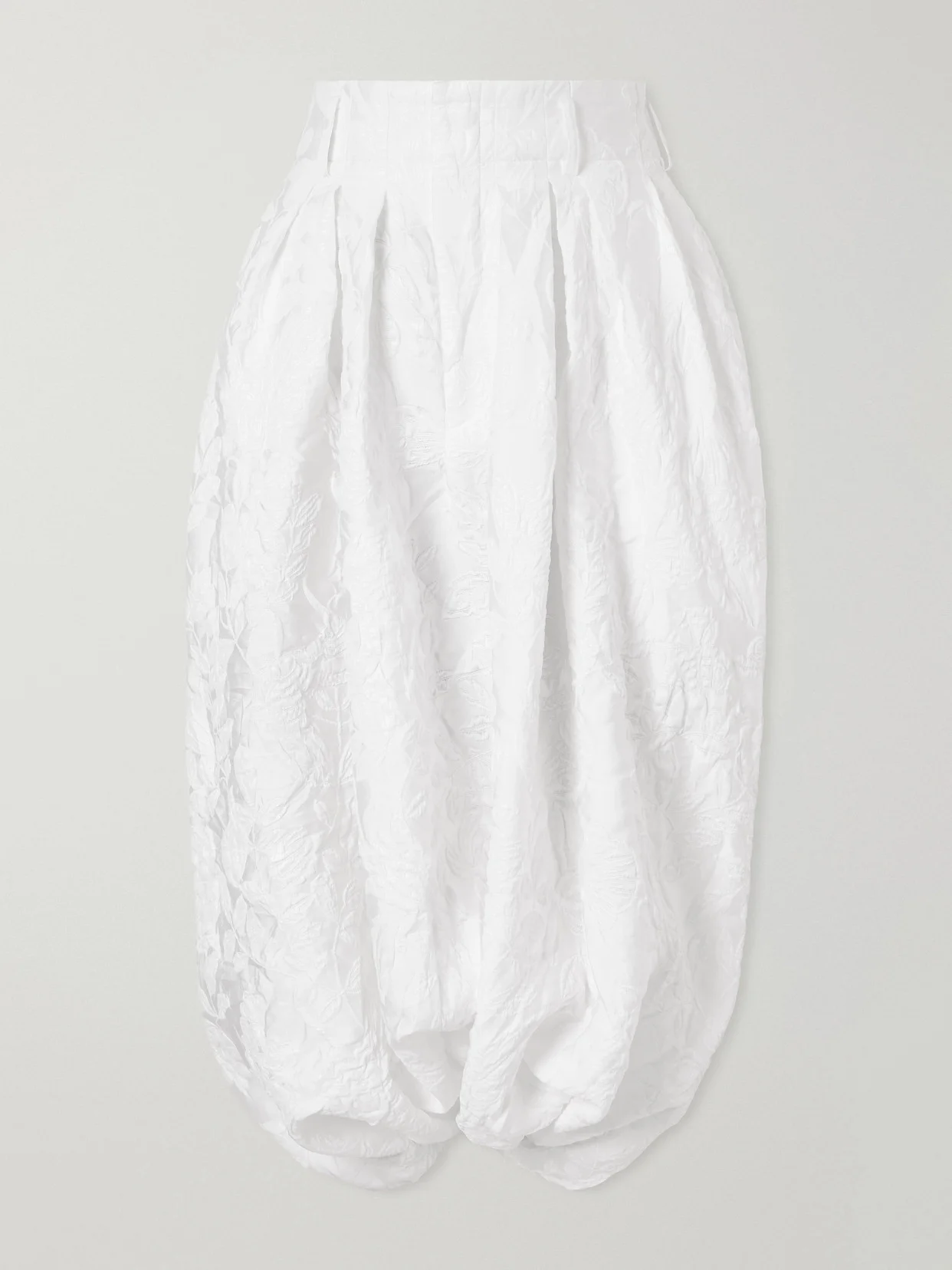 Subverting the natural lines of the body through extravagant silhouettes is what Comme des Garcons is known for. Made from jacquard-knit, these pants have blooms woven throughout and an exaggerated parachute shape. Style them with a statement jacket.