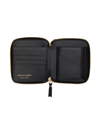 Buffed leather wallet in black. Polka dot pattern bonded in white throughout. · Zip closure · Four card slots · One note slot · Coin pouch with press-stud closure · Gold-tone hardware · H5 x W4 x D1 in Supplier color: Black Leather.