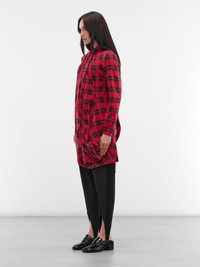 Red Tartan Asymmetric Draped Hoodie