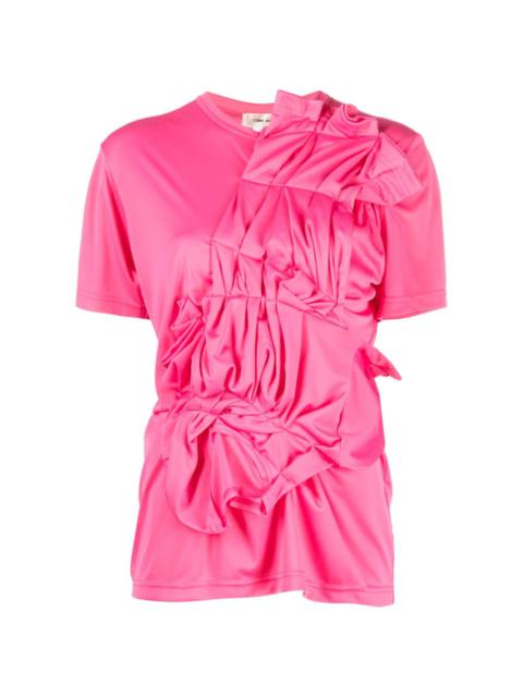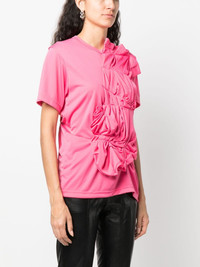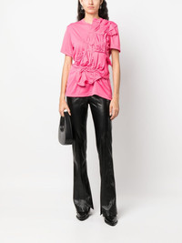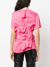 ruched-detailing jersey T-shirt Highlights - Hot pink - Jersey texture - Ruched detailing - Crew neck - Short sleeves - Straight hem Imported Composition Polyester 100% SIZE & FIT Model measurements Height 5 ft 10 in(1.79 m) Bust/Chest 33.07 in(84 cm) Hips 35.82 in(91 cm) Waist 24.01 in(61 cm) FittingInformation Designed for a slim fit that sits just away from the body offering a close yet comfortable fit Made from a midweight non-stretch fabric, this piece offers minimal elasticity when worn This piece fits true to size – take your usual size Washing instructions Hand Wash