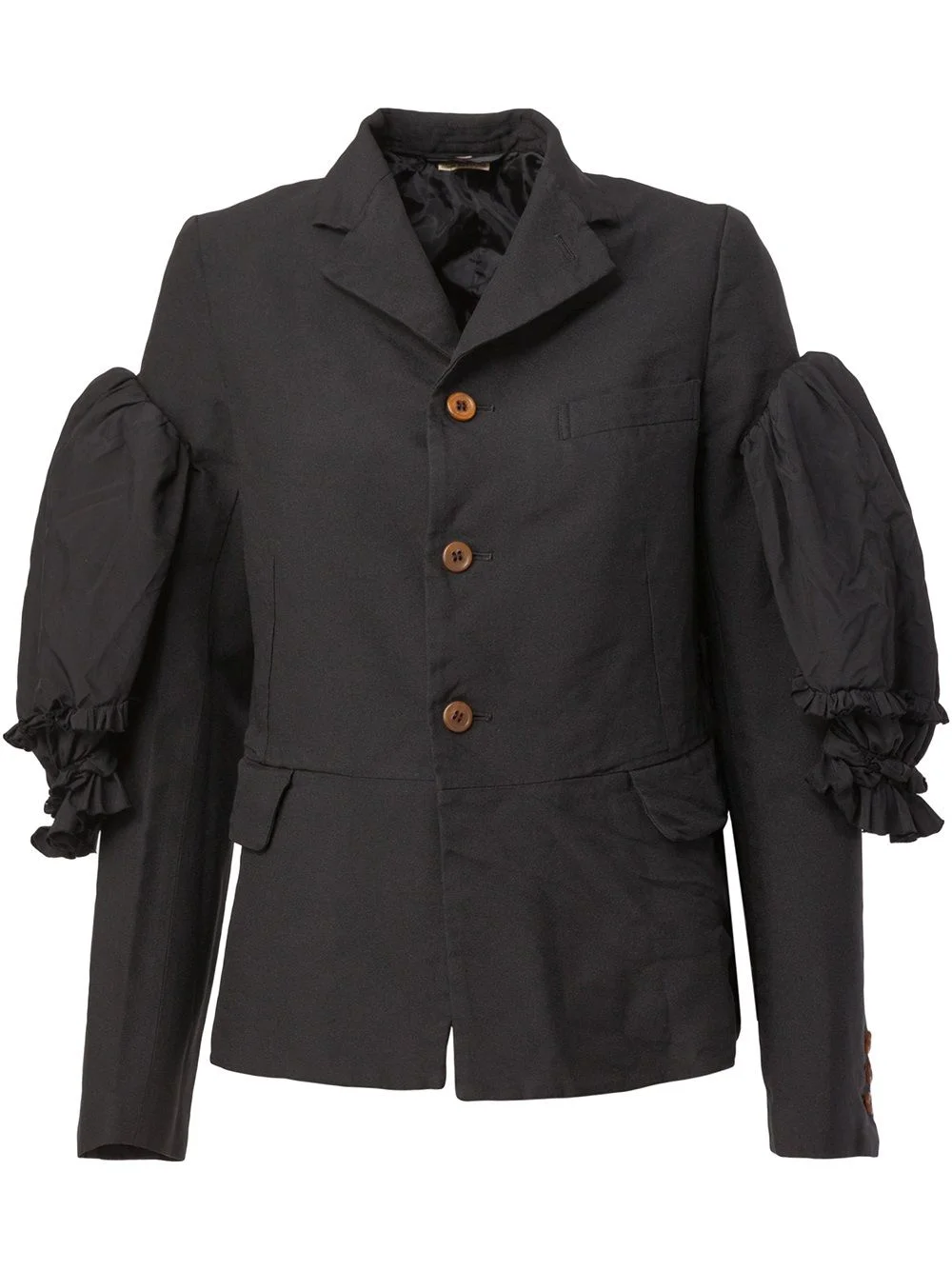 ruffle sleeve blazer Black ruffle sleeve blazer from Comme Des Garcons. Imported Composition Polyester 100% Lining: Polyester 100% Washing instructions Dry Clean Only