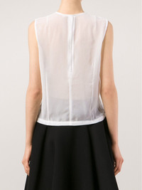 ruffled front top White ruffled front top from Comme Des Garcons. Imported Composition Polyester 100% SIZE & FIT Model measurements Height 5 ft 9 in(1.75 m) Bust/Chest 31.1 in(79 cm) Hips 35.03 in(89 cm) Waist 22.83 in(58 cm)