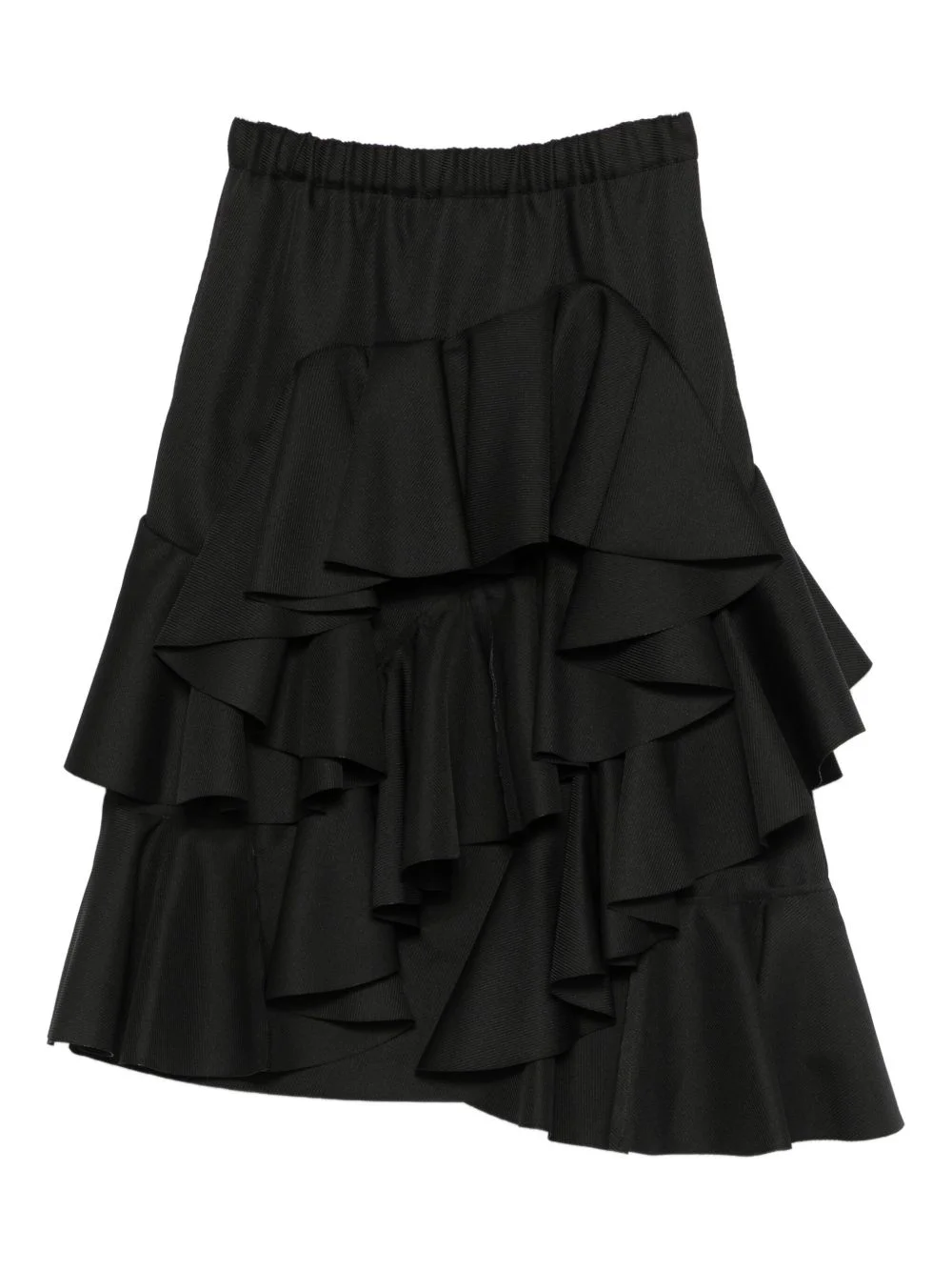 ruffled midi skirt Highlights - Black - Elasticated waistband - Tiered ruffles Imported Composition Polyester 100% SIZE & FIT Model measurements Height 5 ft 9 in(1.76 m) Bust/Chest 31.88 in(81 cm) Hips 35.43 in(90 cm) Waist 24.8 in(63 cm) Washing instructions Hand Wash
