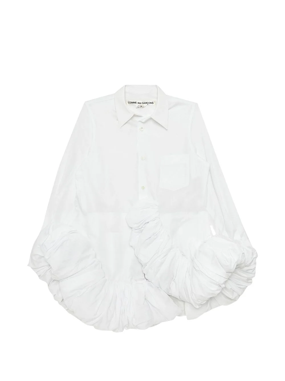 ruffled shirt Highlights - Off-white - Ruffled detailing - Button fastening - Chest pocket - Long sleeves - Buttoned cuffs Imported Composition Fabric 100% Washing instructions Read Manufacturer Guidelines
