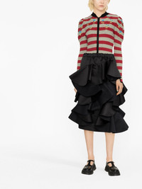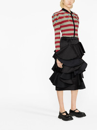 ruffled tiered midi skirt Defined by cascading layers of ruffles, this midi skirt from Comme Des Garcons is emblematic of the brand’s penchant for voluminous silhouettes. Highlights - Black - Satin weave - Ruffled detailing - Mid-rise - Elasticated waistband - Tiered skirt - Below-knee length Imported Composition Polyester 100% SIZE & FIT Model measurements Height 5 ft 10 in(1.79 m) Bust/Chest 31.49 in(80 cm) Hips 35.03 in(89 cm) Waist 23.62 in(60 cm) Washing instructions Dry Clean Only