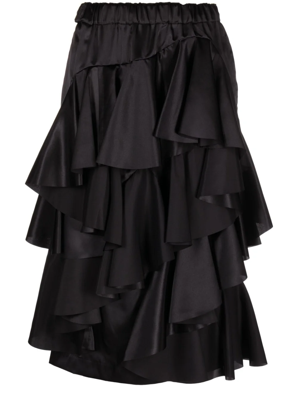 ruffled tiered midi skirt Cascading asymmetric ruffles make up the construction of this black Comme Des Garcons skirt, echoing the brand’s lean toward bold detailing. Imported Composition Polyester 100% SIZE & FIT Model measurements Height 5 ft 10 in(1.78 m) Bust/Chest 30.7 in(78 cm) Hips 34.64 in(88 cm) Waist 23.22 in(59 cm) FittingInformation This midi-length skirt is intended to be worn just below the waist The elasticated waist allows for a comfortable fit Made from a midweight non-stretch fabric This piece fits true to size – take your usual size Washing instructions Hand Wash