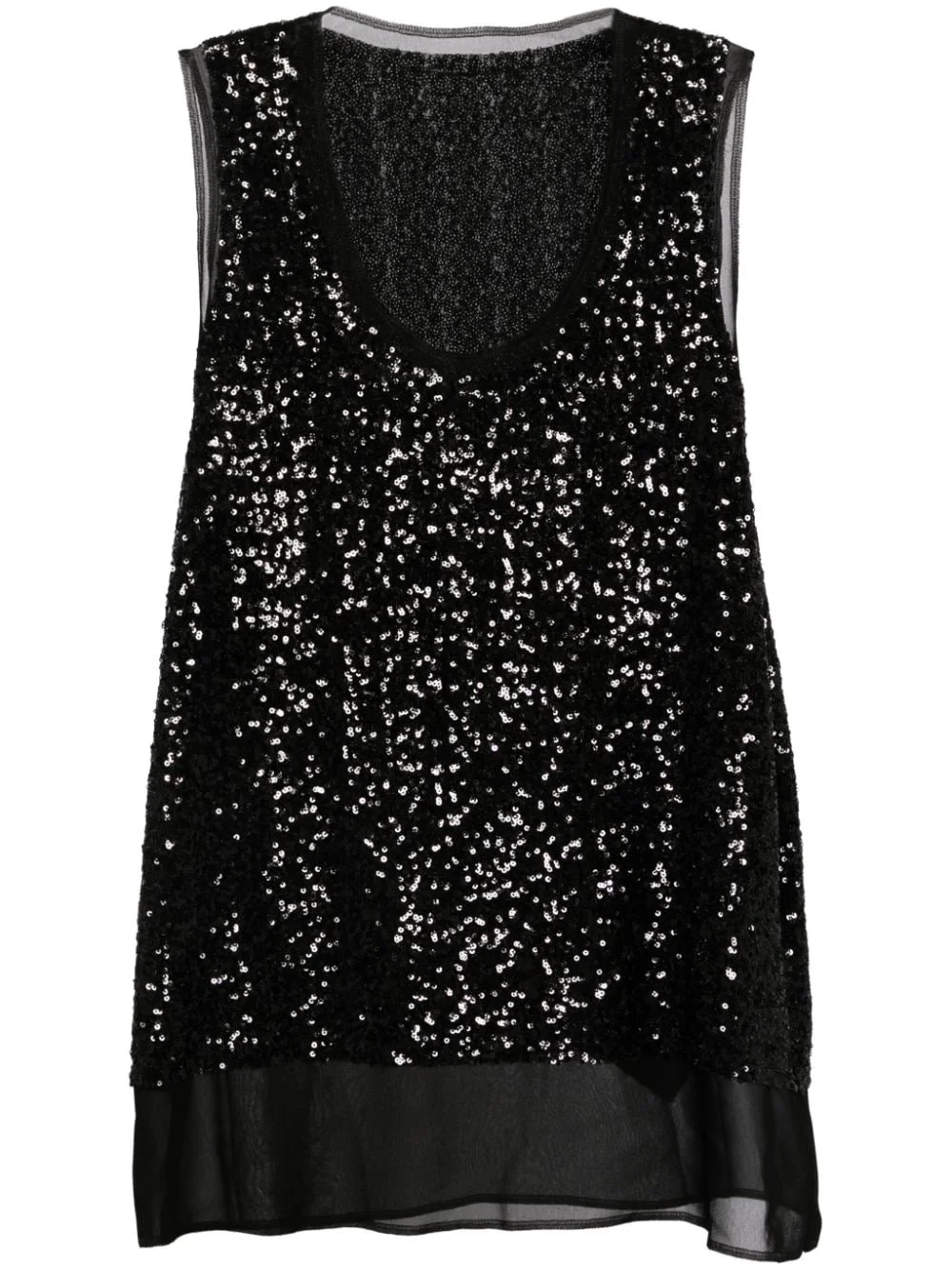 sequin-embelished tank top Highlights - Black - Sequin design - Round neck - Sleeveless - Straight hem Imported Composition Polyester 90%, Polyurethane 10%