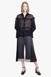 SHEER BALLOON SLEEVE PANEL DETAIL L/S SHIRT | NAVY