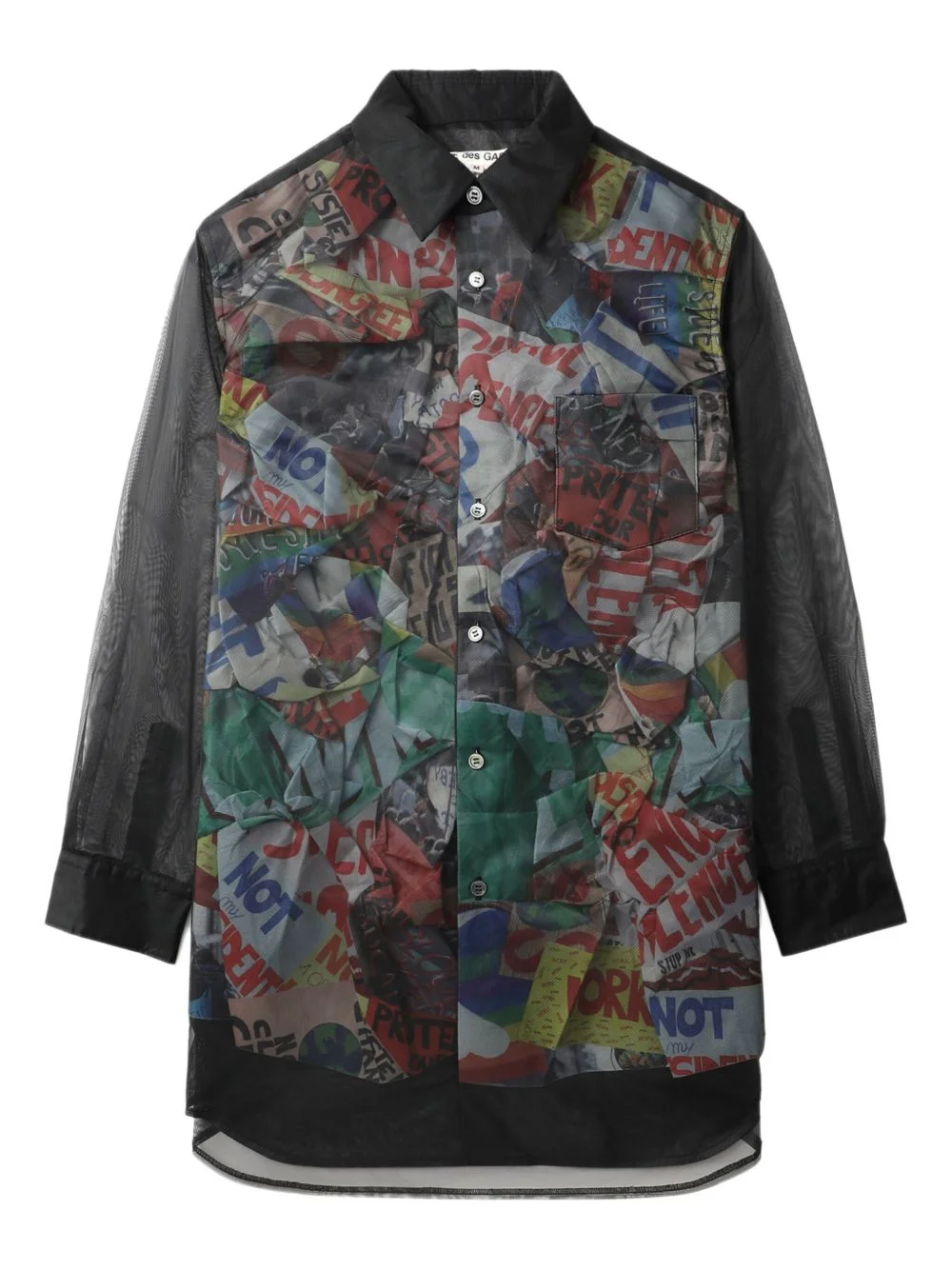 sheer-panel printed shirt Highlights - Black - Sheer panel sleeves - Collared neckline - Long sleeves - Button fastening - All-over print Imported Composition Outer: Nylon 100% Lining: Nylon 100% Polyester 100% Washing instructions Hand Wash