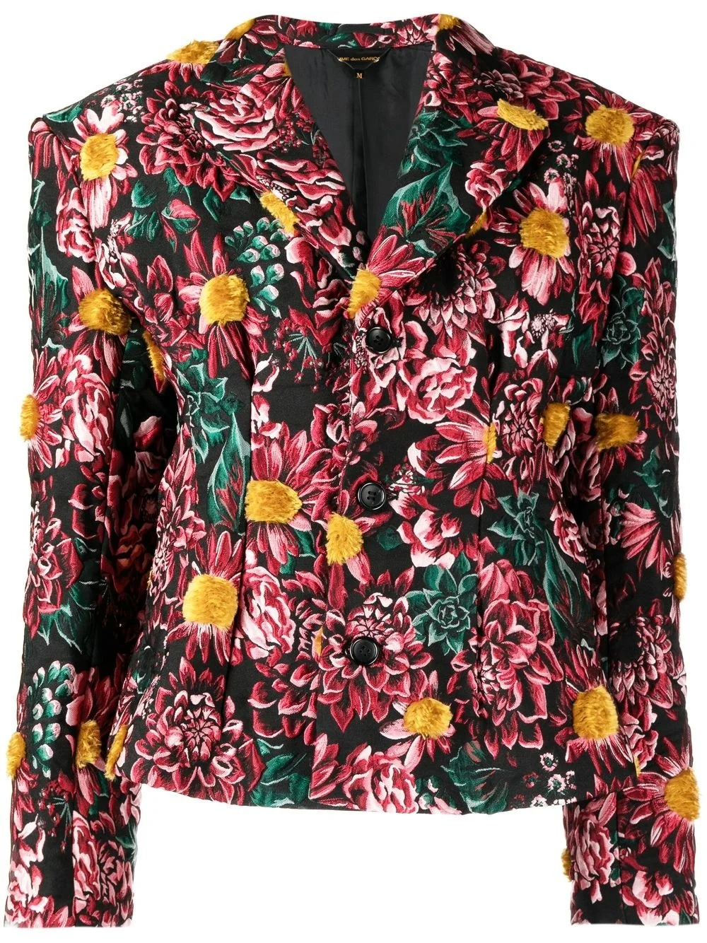 single-breasted floral blazer multicolour all-over floral print peak lapels front button fastening two side inset pockets long sleeves straight hem Imported Composition Polyester 89%, Nylon 11% SIZE & FIT Model measurements Height 5 ft 11 in(1.8 m) Bust/Chest 28.34 in(72 cm) Hips 35.43 in(90 cm) Waist 23.62 in(60 cm) FittingInformation This piece fits true to size. We recommend you get your regular size Designed for a loose fit with a close fit at the waist Made with a mid-weight non-stretch fabric Washing instructions Dry Clean Only