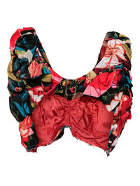 sleeveless cropped top Highlights - Red - Multicolour - Cropped - Sleeveless - Floral print - V-neck - Fully ruffled - Open back - Rear buckle fastening Imported Composition Lining: Cupro 100% Body: Polyester 100%