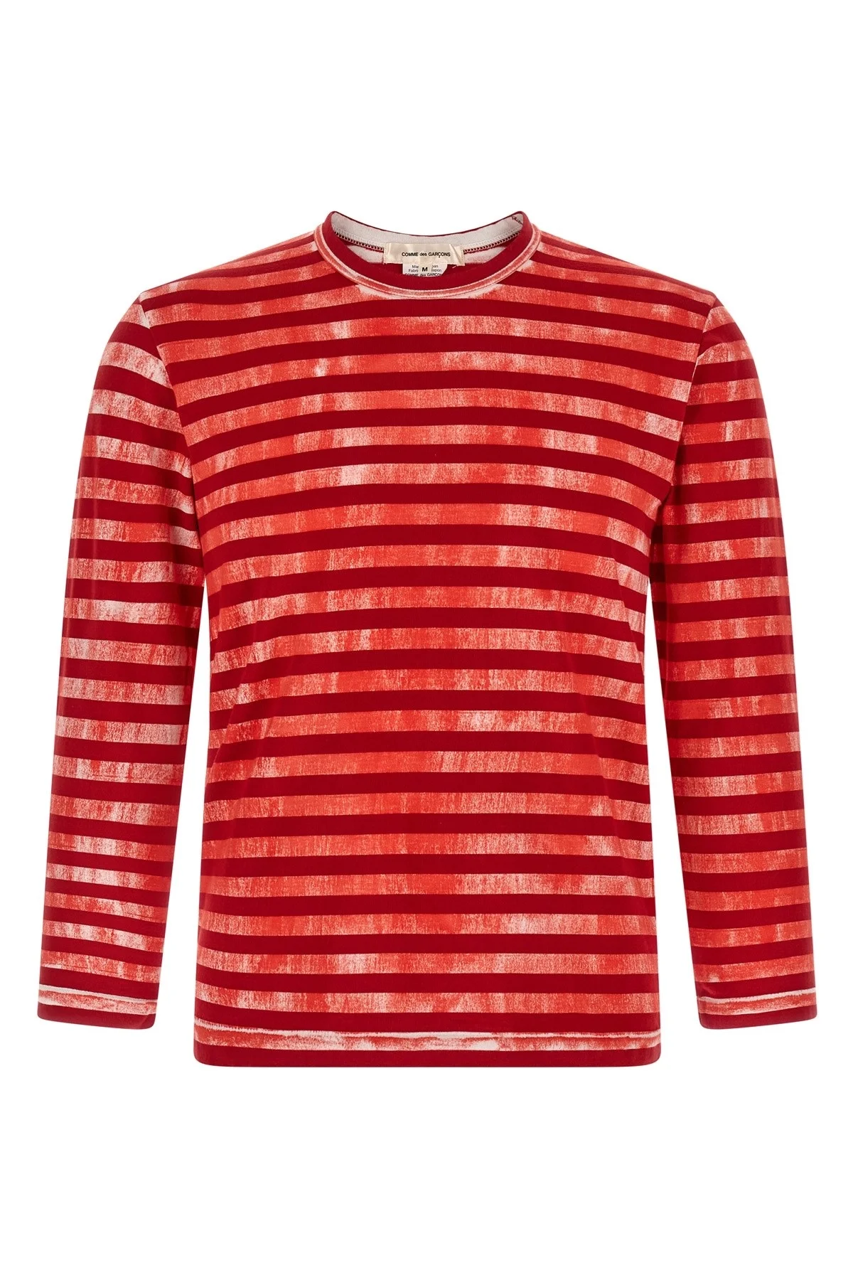 cod. GQT0161 Striped cotton jersey T-shirt with overlapping watercolor effect print, crew neck, long sleeves. Color: Red Composition: 100% cotton Made in: Japan