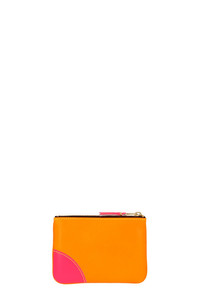 cod. SA8100SFYELLOWORANGE ‘Super Fluo’ leather card holder, embossed logo on the front, top zip closure, fluorescent color. Color: Multicolor Size & Fit: W 13.5 x H 10 cm Composition: 100% leather Made in: Spain