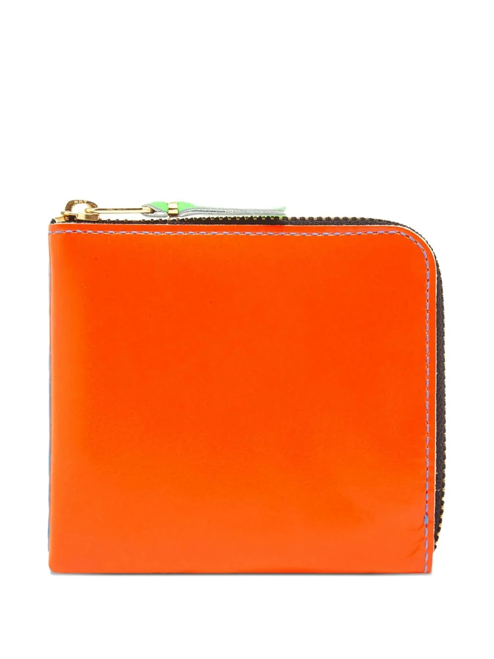 Super Fluo zip-around wallet Highlights - Orange - Zip fastening - Goat skin - Square shape - Gold-tone zipper pull Imported Composition Outer: Goat Skin 100% SIZE & FIT Measurement DEPTH 0.51 in(1.3 cm) LENGTH 3.74 in(9.5 cm) WIDTH 4.33 in(11 cm)