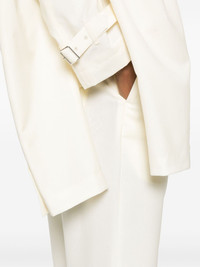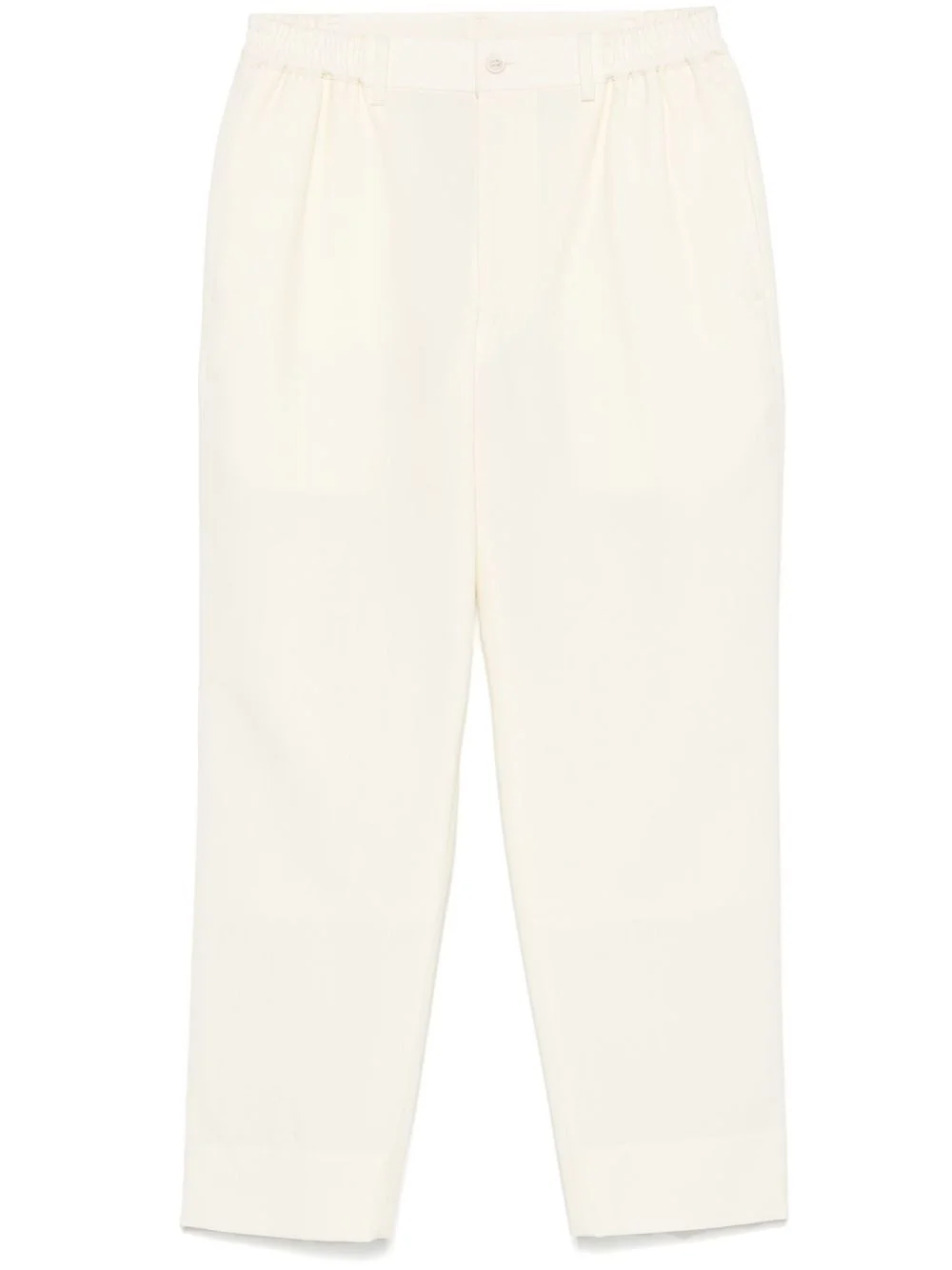 tapered trousers Highlights - White - Front button and zip fastening - Belt loops - Two side inset pockets - Rear welt pocket Imported Composition Lining: Cupro 100% Outer: Wool 100% SIZE & FIT Model measurements Height 5 ft 11 in(1.8 m) Bust/Chest 31.49 in(80 cm) Hips 36.61 in(93 cm) Waist 24.4 in(62 cm) FittingInformation Designed for a tapered fit, these trousers allow for a close fit at the waist and a loose unrestricted fit over the leg with a closer fit towards the ankle The partially elasticated waistband offers increased movement and comfort at the waist Made from a midweight non-stretch fabric Washing instructions Dry Clean Only