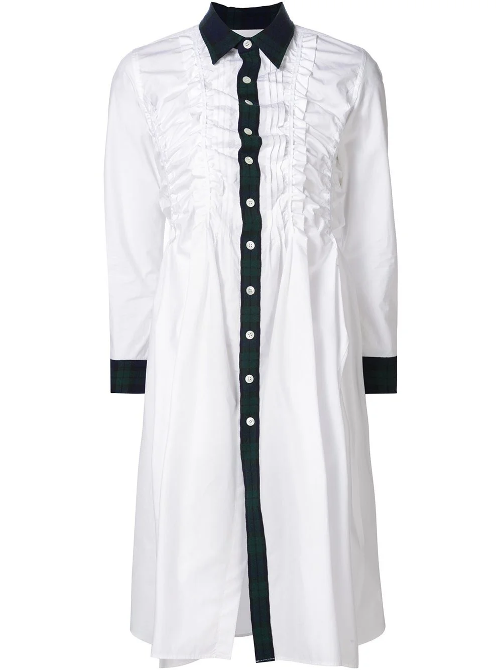 tartan trim shirt dress White, navy and green cotton and wool tartan trim shirt dress from Comme Des Garcons. Imported Composition Cotton 100%, Wool 66% Washing instructions Dry Clean Only