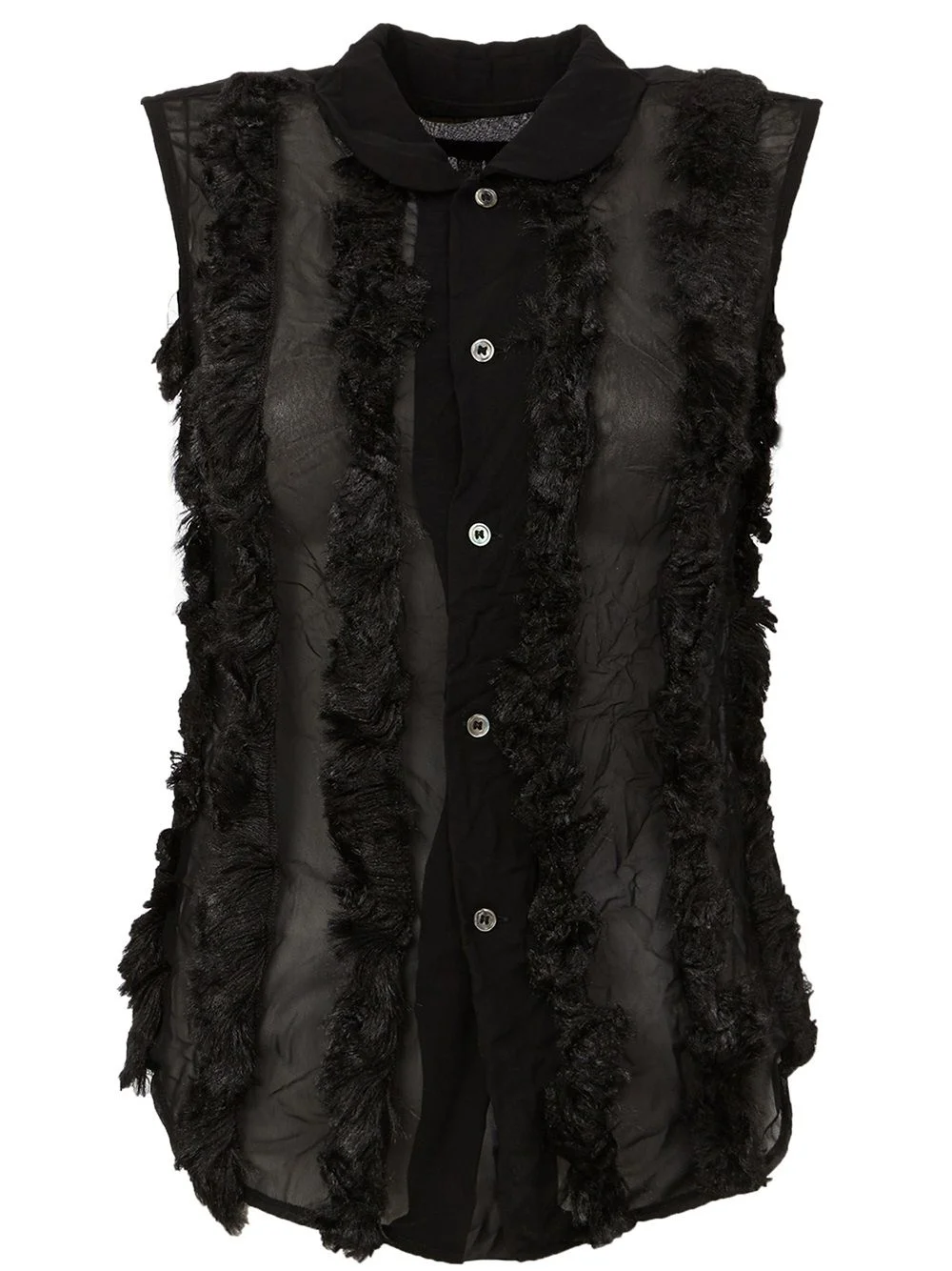 textured see-through top Black textured see-through top from Comme Des Garcons. Imported Composition Modacrylic 100%, Polyester 100%, Acrylic 60%, Nylon 20% Washing instructions Dry Clean Only
