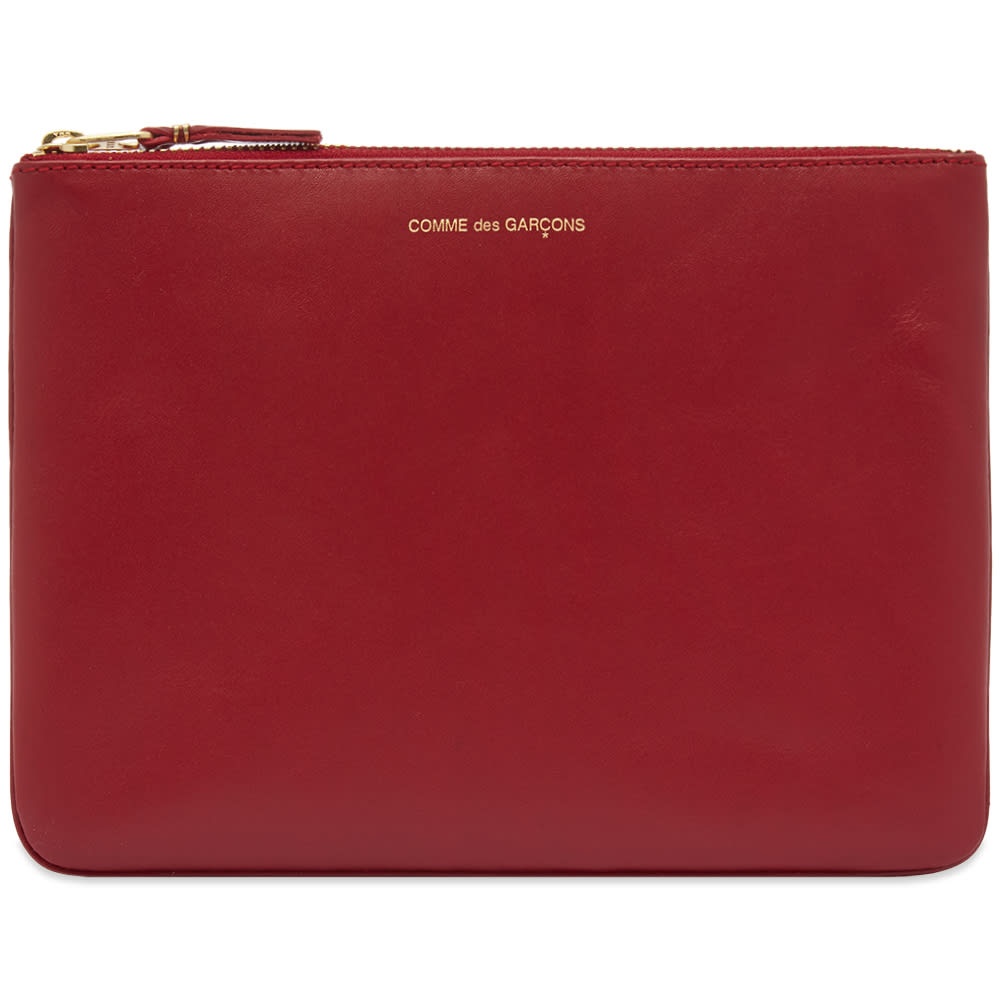 A large pouch from Comme des Garçons, the SA5100 wallet is spacious enough to hold your phone, cards and cash. In deep red, it’s secured with a gold-tone zip and accented with metallic branding. - Cowhide Leather - Zip Closure - Made in Spain