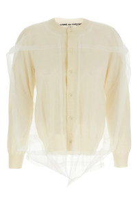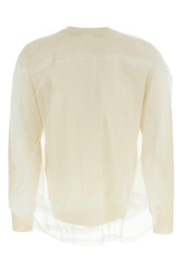cod. GOB0181 Knitted cardigan, crew neck, front button closure, long sleeves, multilayer tulle detail. Color: White Size & Fit: True to size fit Composition: 100% wool Made in: Japan