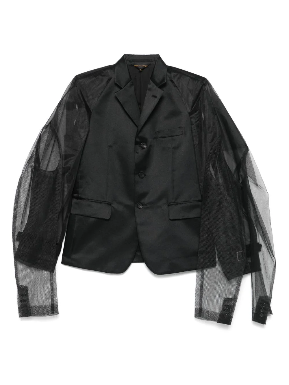 tulle-inserts blazer Highlights - Black - Front button fastening - Two front flap pockets - Belted cuffs - Armholes Imported Composition Outer: Nylon 100%, Polyester 100% Lining: Cupro 100% SIZE & FIT Model measurements Height 5 ft 11 in(1.8 m) Bust/Chest 31.49 in(80 cm) Hips 35.82 in(91 cm) Waist 24.8 in(63 cm) FittingInformation Designed for a slim fit that sits just away from the body offering a close yet comfortable fit The internal shoulder pads offer a structured shape Made from a lightweight non-stretch fabric Washing instructions Dry Clean Only