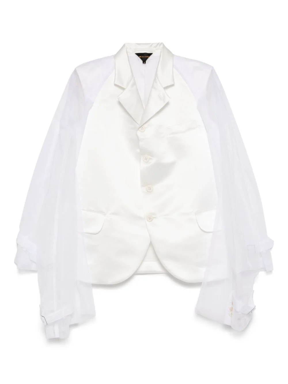 tulle-inserts blazer Highlights - White - Front button fastening - Chest welt pocket - Two front flap pockets - Contrasting-fabric sleeves Imported Composition Outer: Polyester 100% Lining: Cupro 100% SIZE & FIT Model measurements Height 5 ft 9 in(1.76 m) Bust/Chest 30.7 in(78 cm) Hips 33.46 in(85 cm) Waist 24.4 in(62 cm) FittingInformation Designed for a slim fit that sits just away from the body offering a close yet comfortable fit The internal shoulder pads offer a structured shape Made from a midweight non-stretch fabric