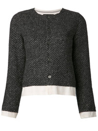 tweed cardigan jacket Black wool blend tweed cardigan jacket from Comme Des Garcons featuring a crew neck, a front button fastening and long sleeves. Imported Composition Wool 66%, Polyester 34% Lining: Cotton 100% SIZE & FIT Model measurements Height 5 ft 10 in(1.78 m) Bust/Chest 31.88 in(81 cm) Hips 33.85 in(86 cm) Waist 25.19 in(64 cm) Washing instructions Dry Clean Only