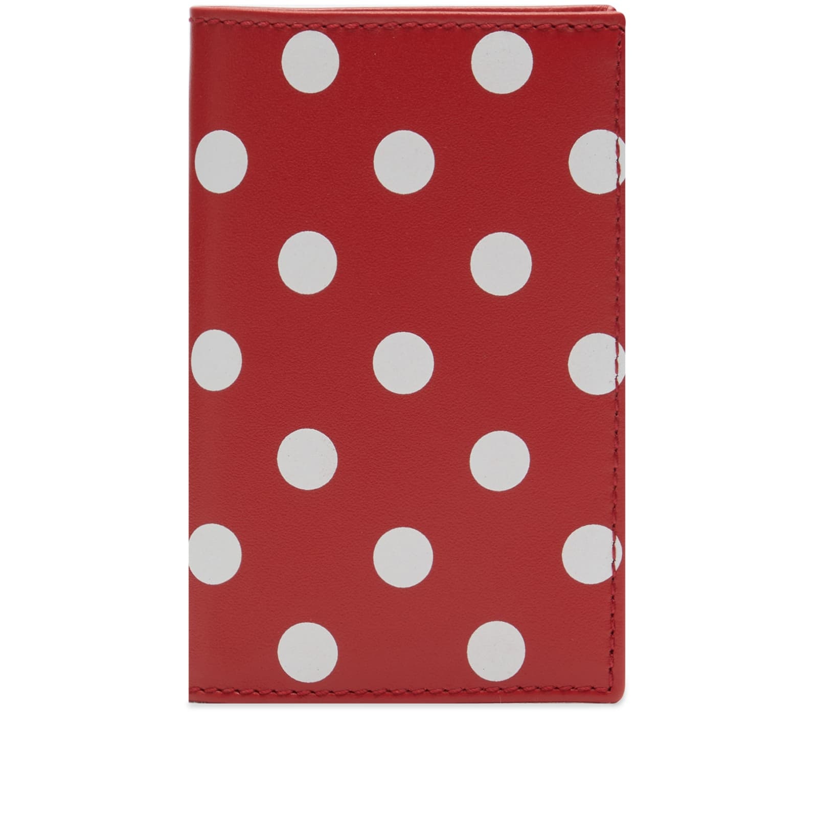 You'll never lose sight of this eye-catching Comme des Garçons wallet, even in the depths of your bag. Its playful design features bold polka dots embossed on smooth calf leather, showcasing the Japanese brand's signature unconventional style. Open it up to discover two slip pockets, a note compartment and gold-tone branding. - 100% Calf Leather - 2 Internal Slip Pockets - Note Compartment - Embossed Branding