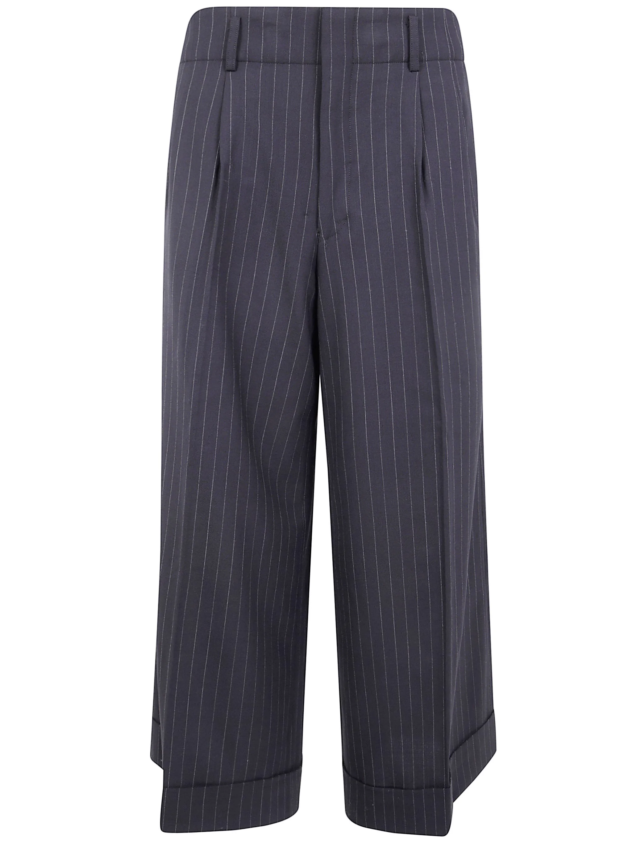 Introducing the 'WIDE LEG TROUSERS' from the esteemed brand COMME DES GARCONS, a remarkable addition to your wardrobe. Crafted with an exquisite blend of 68% Polyester, 29% Wool, and 3% Polyurethane, these trousers boast a sophisticated Black hue. Made in Japan, they reflect meticulous craftsmanship and attention to detail. The wide-leg design offers a modern silhouette, perfect for both casual outings and upscale events. Pair them with a tailored blazer for an elegant dinner or a chic top for a day out. Experience luxury and versatility in every wear, embodying a refined yet contemporary aesthetic.. MadeIn: Japan JP Product code: GP.P021 0511 BLACK