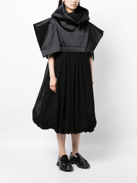 wide-sleeves puffball midi dress Highlights - Black - Cotton - Satin finish - Mock neck - Wide sleeves - Pleated skirt - Puffball hem - Mid-calf length Imported Composition Bottoms: Polyester 100% Body: Polyester 100% Inner: Cotton 100% SIZE & FIT Model measurements Height 5 ft 10 in(1.77 m) Bust/Chest 28.74 in(73 cm) Hips 35.82 in(91 cm) Waist 24.4 in(62 cm) FittingInformation Designed to be unstructured, offering a loose fit throughout Made from a heavyweight non-stretch fabric This piece fits true to size – take your usual size