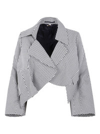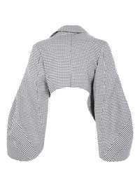 gingham-check jacket Highlights - Black - Gingham check pattern - Asymmetrical hem - Puff sleeves - Welt pockets - Notched lapels Imported Composition Fabric 100% Washing instructions Read Manufacturer Guidelines
