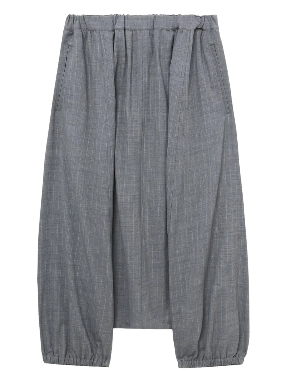 elasticated trousers Highlights - Grey - Elasticated waistband - Elasticated hems - Side seam pockets - Gathered detail Imported Composition Polyester 68%, Wool 32% Washing instructions Read Manufacturer Guidelines