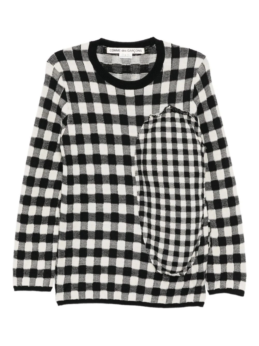 checked jumper Highlights - Black - Ribbed cuffs and hem - Crew neck - Long sleeves Imported Composition Wool 100% Washing instructions Dry Clean Only
