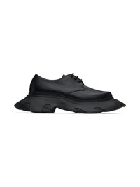 Buffed leather derbys in black. · Lace-up closure · Logo printed at padded footbed · Buffed leather lining · Logo-embossed sculptural rubber platform sole · Platform: H2.25" Part of the Comme des Garcons x Phileo collaboration. Supplier color: Black