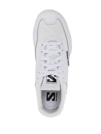 x Salomon SR90 panelled sneakers Comme Des Garçons' collaborate with the masters of athletic footwear in their collection with Salomon. Sartorially crafted in a tonal white design, these SR90 sneakers boast water-repellency and Salomon's unique Contagrip⢠sole for traction and durability. Imported Composition Lining: Leather 100% Sole: Rubber 100% Outer: Fabric 100% SIZE & FIT Measurement HEEL 9.8 in(25 cm) Sole height 0.8 in(2 cm)