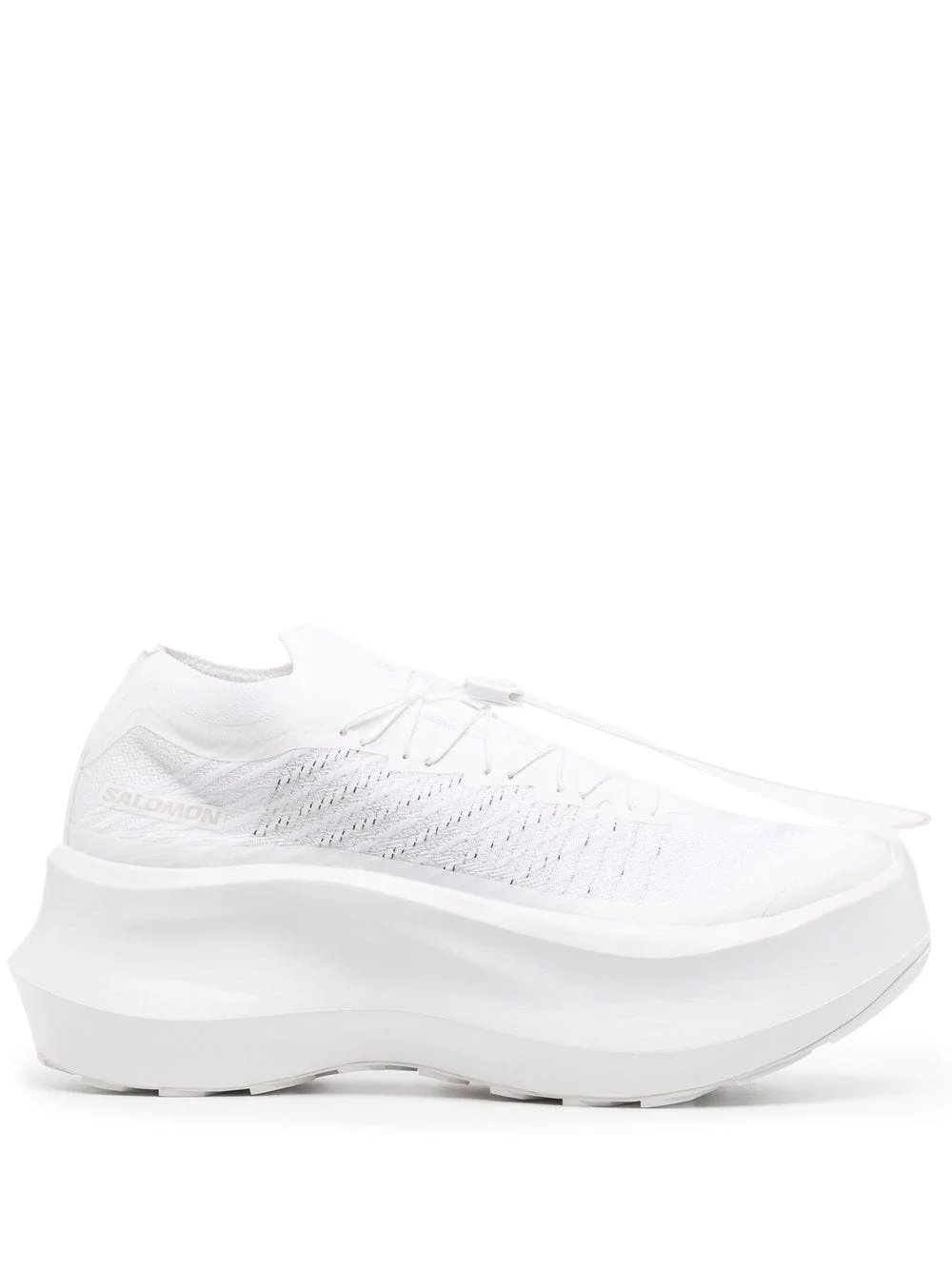 low-top slip-on sneakers cloud white intarsia knit logo-print tongue front toggle fastening branded insole round toe platform sole slip-on style Imported Composition Sole: Rubber 100% Outer: Fabric 100% Lining: Fabric 100% SIZE & FIT FittingInformation This piece fits large – take one size down Measurement CIRCUMFERENCE 2.95 in(7.5 cm) Sole height 1.96 in(5 cm)