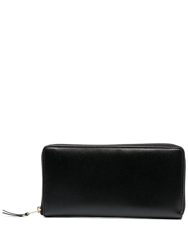 SA0110 Wallet in Black from Comme des Garcons Wallet Highlights - black - leather - zip fastening - multiple card slots - coin pocket - internal logo stamp Product Measurements: Width: 20cm Length: 10cm Depth: 2cm Made in Spain Designer ID: SA0110 Materials 100% Cowhide For surface stains, we recommend wiping with a damp cloth.
