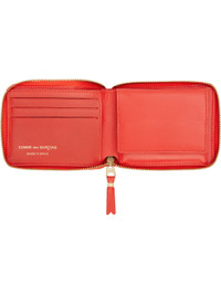 Buffed leather wallet in orange. · Zip closure · Three card slots · One patch pocket · One note slot · Press-stud coin compartment · Grained leather lining · H4" x W4.5" x D1" Supplier color: Orange Leather. Made in Spain 252230F045004